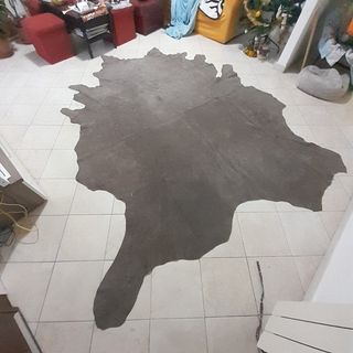 Vendo splendido tappeto in vera pelle bovina sagomata. Caratterizzato da una finitura naturale scamosciata color antracite, è un pezzo d'arredo unico e di grande impatto visivo. Ideale per dare un tocco rustico-chic o industriale al soggiorno o alla camera da letto. Ottime condizioni, pelle morbida e resistente. #tappetopelle #interiordesign #arredocasa #pellebovina #homedecor