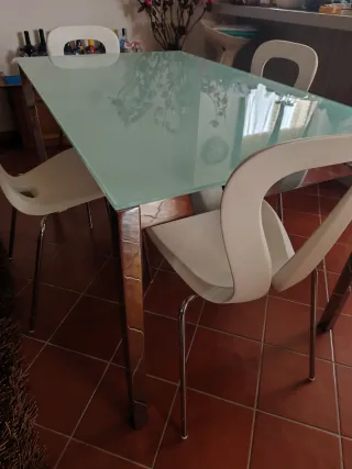 Tavolo vetro allungabile + 4 sedie bianche
