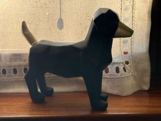 Elegante soprammobile a forma di bassotto, un pezzo di design unico per la tua casa. - Linee geometriche moderne. - Dettagli in finitura oro. Presenta alcune imperfezioni nella pittura, già presenti al momento dall’acquisto (vedi foto).