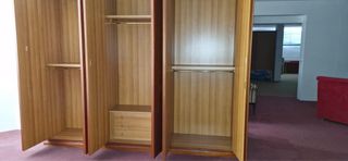 Armadio in ciliegio con sei ante, in ottime condizioni. Design a due livelli con tre ante ciascuno. Finitura in legno di ciliegio, dotato di 4 barre per appendere, ripiani e cassetti, grande capacità e spazioso. VENDITA URGENTE!!