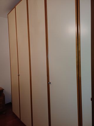Ampio armadio con sei ante, perfetto per organizzare i tuoi vestiti e accessori. - Sei ante. - Finitura in legno. - Colore beige. Cedo per ristrutturazione casa.