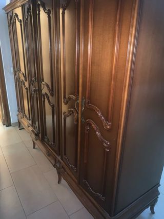 Si trova al secondo piano senza ascensore, effettuiamo solo spedizioni tramite corriere o Wallapop. Guardaroba da camera in stile classico, con un design elegante e senza tempo. È smontabile. - Sei ante. - Maniglie ornate. - Base con cassetti. - Finitura in legno.