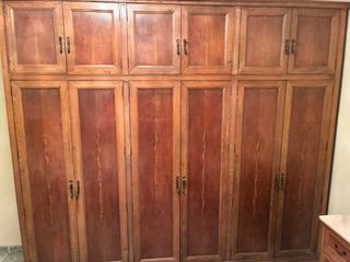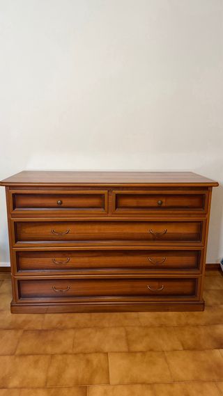 Armadio di grande capacità con sei ante e cassetti inferiori. Il suo design classico ed elegante lo rende perfetto per qualsiasi camera da letto. Realizzato in legno di noce, con maniglie dorate e dettagli ornamentali sulle ante. In ottime condizioni, smontato e avvolto in pellicola a bolle. Prezzo trattabile. Posso consegnarlo al tuo ingresso con la mia furgonetta (Valladolid).