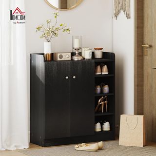 Zapatero di Ingresso con 4 Ripiani Aperti, Armadio Multiuso con 2 Ante e Ripiani Regolabili, Porta Scarpe Salvaspazio per 12 Paia, 83X30X90 Cm, Nero
