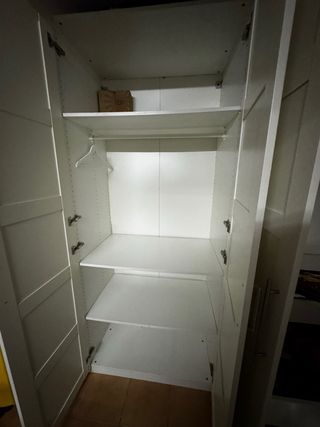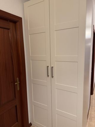 Guardaroba IKEA modello SKRUVBY in perfetto stato. Si vende l'insieme completo. Combina finiture in bianco e legno. Design moderno e funzionale. Struttura in legno con dettagli in bianco. Maniglie metalliche. Nessuna spedizione per questo prodotto.