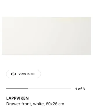 Fianco o frontale per cassetto (non incluso il cassetto) modello LAPPVIKEN di Ikea. Aggiungi un tocco moderno e funzionale al tuo mobile. Misure: 60x26 cm. Colore bianco. Possibilità di acquistare anche binario/guida per cassetto a 3€.