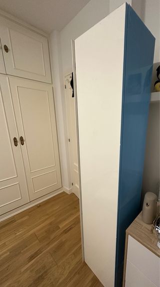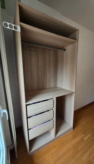 Guardaroba modulare del marchio Ikea, ideale per organizzare i tuoi effetti personali. Non include le gambe, che non sono costose e possono essere acquistate separatamente. Struttura in legno. Finitura in bianco.
