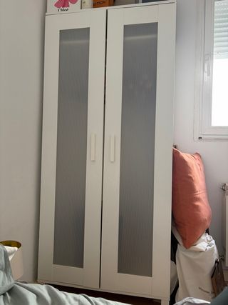 Armadio a due ante di Ikea. Un mobile funzionale ed elegante per la tua casa. Design moderno con ante in vetro traslucido. Maniglie integrate per un accesso comodo. SOLO PRELIEVO, NON SPEDITO