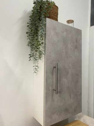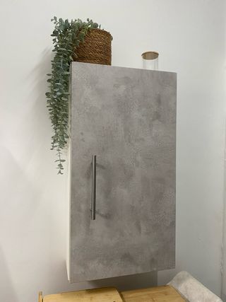Armadio a parete di Ikea con un design moderno e finitura in cemento. - Maniglia metallica. - Porta con apertura. Ideale per bagni o cucine.