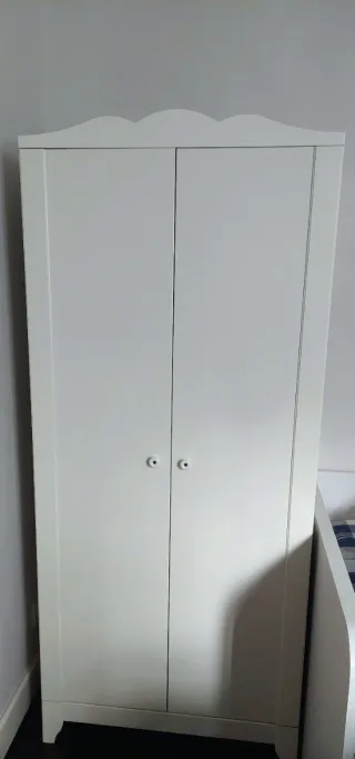 Guardaroba per bambini di Ikea con un design incantevole e finitura liscia. - Due porte con maniglie rotonde. - Frontale con bordo decorativo superiore. Ideale per camerette. Montaggio effettuato da montatore Ikea.
