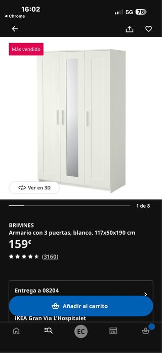 💥 Vendo armadio BRIMNES di IKEA – PER MANCANZA DI UTILIZZO 📏 Dimensioni: • Larghezza: 117 cm • Profondità: 50 cm • Altezza: 190 cm ✅ Caratteristiche: • 👕 Barra per appendere vestiti + ripiani interni. • 🗄️ Grande capacità di stoccaggio. • 🎨 Design moderno e facile da abbinare. • 🛠️ Viene consegnato montato. 📍 Zona: Sabadell 💰 Prezzo: 110€