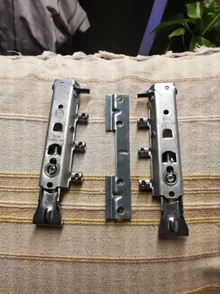 Set di guide per cassetti da 60 cm per quattro cassetti. 8 coppie in totale. Sono molto robuste, non come quelle vendute ora da Leroy, Amazon... che sono super sottili e si piegano, così come le ruote, queste sono di buon plastica. Le ho acquistate in ferramenta. Puoi vedere lo spessore nelle foto. Lo dico per esperienza. Ho comprato per la nuova cassettiera mostrata in foto alcune da Leroy e sono una merda. Resistono meno peso e in un anno ho dovuto sostituirle perché le ruote si sono rotte e le guide si sono piegate... Il basso costo costa caro 😞 Le vendo perché ho cambiato l'armadio e ho messo una cassettiera da 50 cm.