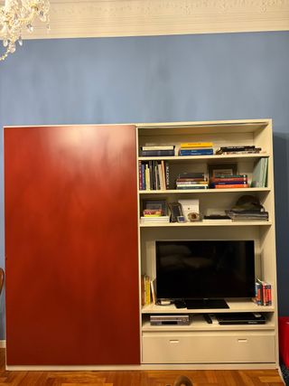 Vendesi magnifica parete attrezzata firmata Molteni & C., un'eccellenza del design Made in Italy. Il mobile è caratterizzato da una grande anta scorrevole color rosso opaco che permette di nascondere o mostrare la zona TV e la cristalleria/libreria a seconda delle necessità. Caratteristiche: Struttura solida, finiture di pregio, vani portaoggetti e cassetti inferiori. Dimensioni: Altezza 232 cm | Larghezza 255 cm | Profondità 42 cm. Condizioni: Pari al nuovo, senza segni di usura evidenti. Smontaggio: Il mobile è smontabile (struttura di alta ebanisteria, non paragonabile a mobili economici). Il ritiro, lo smontaggio e il traspo