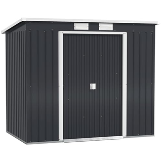 INSERISCI CIÒ CHE VUOI: Quest'ampia casetta da giardino dispone di un grande spazio interno, perfettamente progettato per inserire attrezzi da giardinaggio, per la cura del prato, accessori per piscina e altro ancora che può essere utile all'esterno STRUTTURA RESISTENTE: La nostra casetta da giardino in lamiera è realizzata in resistente acciaio colorato con una finitura resistente alle intemperie e all'acqua, l'ideale per un uso esterno duraturo TETTO INCLINATO: Il tetto del capanno attrezzi è inclinato ed evita l'accumulo di acqua piovana, proteggendolo da eventuali danni dovuti alle intemperie VENTILAZIONE OTTIMALE: Le 4 prese d'