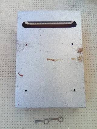 Cassetta postale in metallo, ideale per esterni. Presenta un design funzionale con fessura per lettere e uno sportello con serratura. - Materiale: metallo - Colore: grigio - Include due chiavi Presenza di ruggine, usura legata al tempo e all' utilizzo. Manca plastica di protezione del porta- targhetta del nome. Richiede eventuale lubrificazione della serratura. Attualmente entrambe le chiavi aprono-chiudono. Vedere in foto i dettagli sulla chiusura. Peso dell' oggetto circa 1190 grammi (chiavi incluse). Dimensioni indicative 20,5x30x6 cm Fascia di peso per la spedizione 1-2Kg Spedizione da ITALIA con PROCEDURA WALLAPOP
