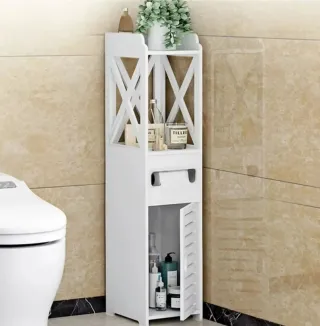 .: Armadio da bagno alto con porte e mensole - mobile per pavimento angolare sottile, organizzatore di vanità stretto con cassetto della carta igienica, scaffale di stoccaggio Dimensioni del prodotto18L 20p x 80H centimetri Caratteristiche speciali a prova di acqua, resistente, facile