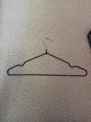 Set di grucce per abiti. - Realizzate in metallo e plastica. - Colore nero e argento.