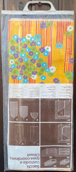 Pratico sacco custodia per abiti, perfetto per conservare i tuoi capi. - Misure: 50x120x20 cm - Realizzato in cotone stampato a telaio - Chiusura con cerniera lampo