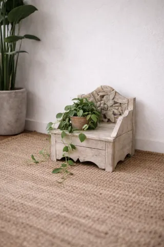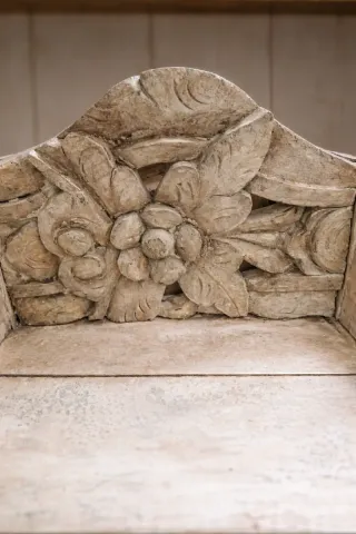 Elegante alzatina in legno con un bellissimo motivo floreale scolpito. _ Pezzo unico artigianale - Design rustico e shabby chic. - Perfetta per esporre oggetti decorativi.