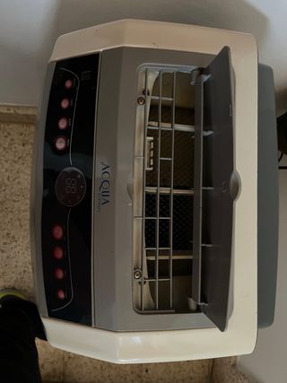 Questo climatizzatore portatile della marca ACQUA è una soluzione pratica per rinfrescare i tuoi spazi. Design moderno in bianco e grigio. Pannello di controllo con schermo digitale.