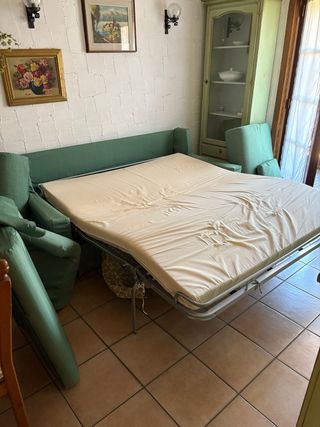 DIVANO LETTO - GRATIS !!! Colore Verdone Materiale tessuto Larghezza circa 200cm Materasso 10cm circa provvisto di 2 cuscini abbinati Ritiro a mano a Santa Maria Maggiore (VB)