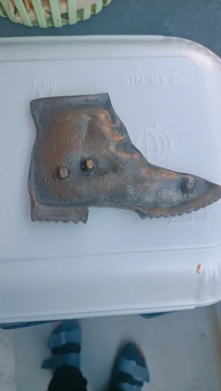 Posacenere vintage a forma di stivale alpino, ottone, anni ’60–’80, peso 185 grammi . Larghezza 12 cm