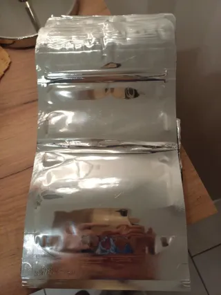 Confezione di buste per conservare alimenti, richiudibile. - Materiale plastico resistente. - Finitura argentata lucida. -Misura da riempire 17x13