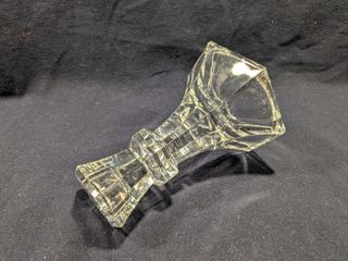 Questo portacandela (brand: Towle) in cristallo ha un design geometrico ed elegante. La base esagonale sfaccettata riflette la luce in modo sofisticato, donando un tocco di classe a qualsiasi ambiente. Il taglio netto e preciso del cristallo richiama lo stile Art Déco, caratterizzato da linee pulite e forme angolari. Un oggetto perfetto per arredamenti classici e moderni.