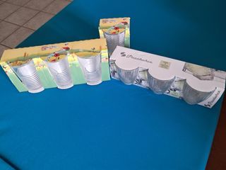 Offerta di 4 bicchieri Mulino Bianco e 3 bicchieri Pasabahce in vetro, mai usati nella loro confezione. Le dimensioni dei bicchieri mulino bianco sono: altezza 12 cm, diametro bordo superiore 7 cm. Le dimensioni dei bicchieri pasabahce sono: altezza 9 cm, diametro bordo superiore 8 cm.