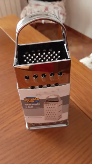 Grattugia a 4 lati, perfetta per la cucina. Realizzata in acciaio inox, è un accessorio resistente e funzionale. - Design a 4 facce per diverse grattugie. - Manico robusto per una presa sicura.