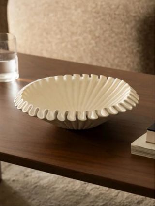 Elegante ciotola decorativa con un design a pieghe che aggiunge un tocco di stile a qualsiasi ambiente. Perfetta come centrotavola o per contenere piccoli oggetti. 30cm