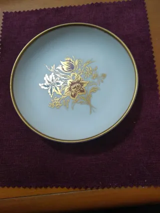 Elegante piattino in ceramica con un raffinato decoro floreale dorato. - Design floreale in oro. - Bordo dorato. - Finitura opaca.