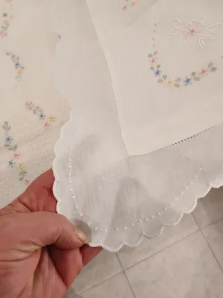 Set di due lenzuola con splendide iniziali ricamate a mano. Uno in lino.... E l altro in cotone completo con il sotto - Ricamo floreale dettagliato. - Tessuto in lino di alta qualità.