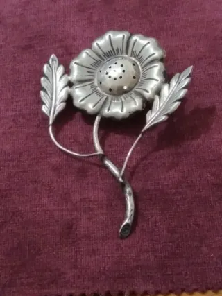 Elegante saliera in metallo color argento, con un design a forma di fiore. - Dettagli floreali finemente lavorati. - Base con fori per la fuoriuscita del sale.