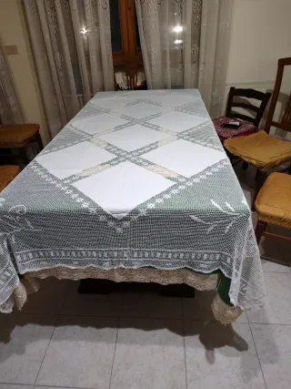 Tovaglia da tavola vintage, lavorata a mano a Filet modano, nuova mai usata ne lavata, perfetta in tutto, senza macchie ne strappi. Mis 180/280.