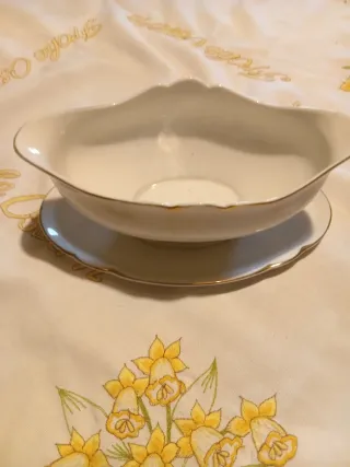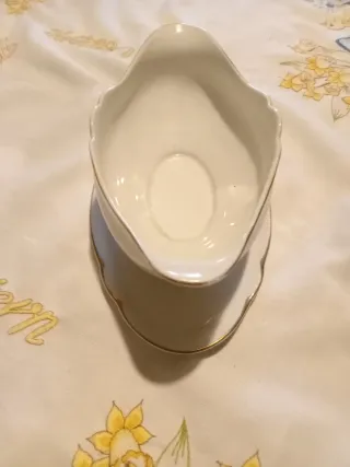 Elegante salsiera in porcellana, un pezzo che evoca lo stile degli anni '50. Della Verbano laveno con numero di produzione. Unica - Design classico con un raffinato bordo dorato. - Realizzata in porcellana di alta qualità.