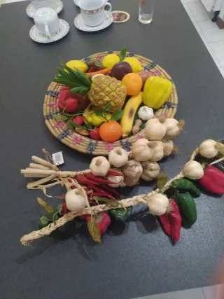 Varie decorazioni in plastica di frutta e verdura da inserire in un negozio o in una cucina
