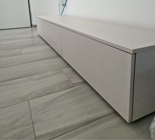 Mobile contenitore LUBE, perfetto per completare la tua parete attrezzata. - Finitura in pietra e legno. - Colore beige e grigio.