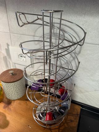 Elegante porta capsule per caffè a forma di spirale, perfetto per organizzare le tue capsule. - Struttura in metallo resistente. - Design a spirale salvaspazio. - Perfetto per tutti i tipi di capsule.