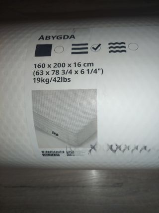 Materasso matrimoniale Ikea ABYGDA, ancora nuovo e sigillato nella sua confezione originale sigillato per errore acquisto semirigido - Dimensioni: 160x200 cm. - Colore: Bianco. - Materiale: Poliestere.