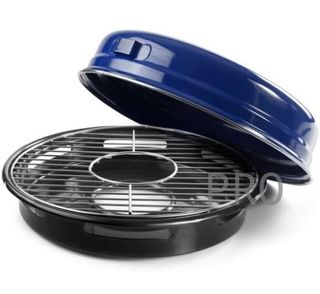 Fornello portatile a gas, ideale per campeggio o attività all'aperto. Compatto e facile da usare. Design in blu e nero. Realizzato con materiali resistenti in metallo e plastica.