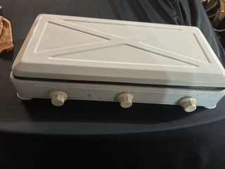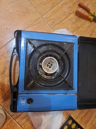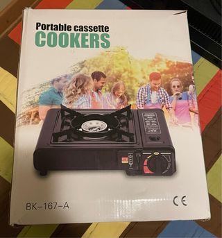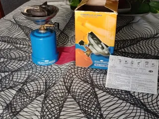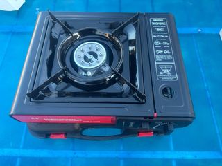 Fornello a gas portatile, ideale per campeggio o cucina. Design compatto e funzionale. Finitura in metallo e plastica resistente.