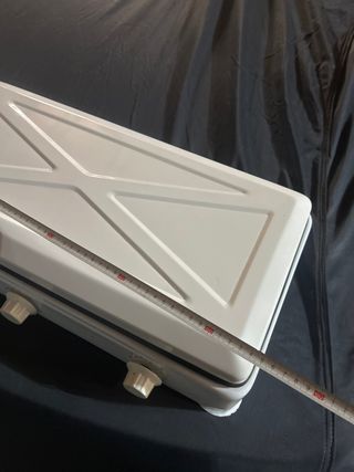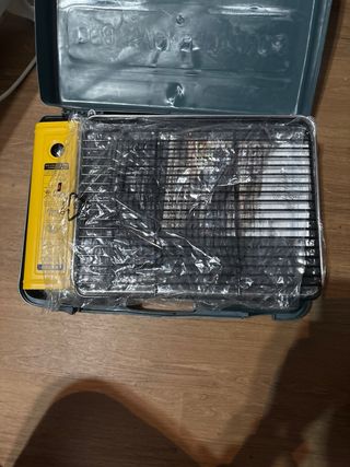Cucina portatile a gas, ideale per campeggio o attività all'aperto. Include valigetta per il trasporto. - Accensione piezoelettrica. - Controllo della fiamma regolabile. - Vassoio estraibile per grassi.