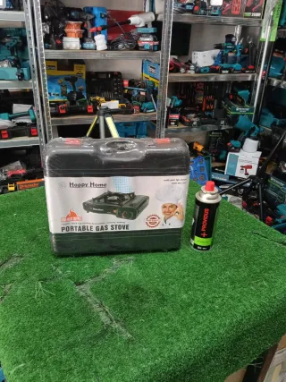 Fornello a gas portatile, ideale per il campeggio o le escursioni. Il suo design compatto lo rende molto pratico. Include valigetta di trasporto, accensione piezoelettrica e regolatore di potenza.