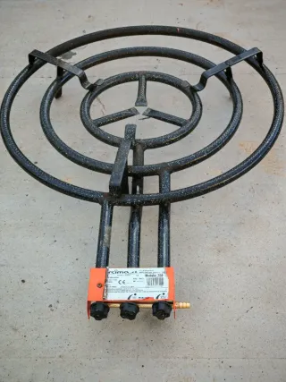 Paellero a gas butano con tre fuochi. 70 cm, ideale per paella e altri stufati. - Funziona perfettamente. - Costruzione robusta in metallo.