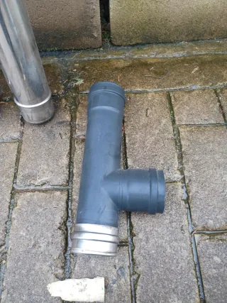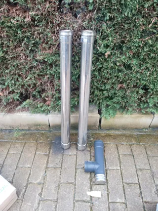 Set di tubi per camino a pellet, realizzati in acciaio inossidabile. Include un accessorio a forma di T. - Due tubi dritti in acciaio inossidabile. - Un accessorio a T. Materiale: Acciaio inossidabile.