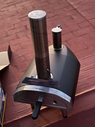 Forno per pizza che funziona a pellet. Ideale per gustare pizze fatte in casa con un tocco affumicato. - Struttura principale in metallo. - Maniglia in legno per l'apertura. Manca il manico in legno del caricatore di pellet, ma ciò non ne pregiudica il funzionamento