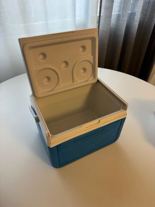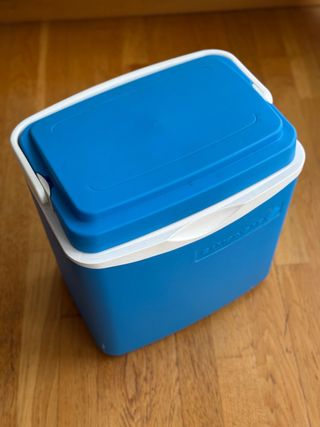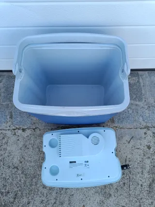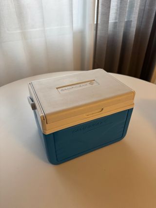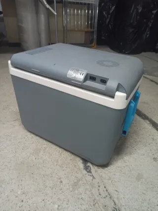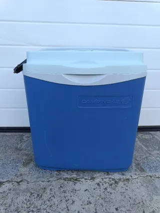 Frigorifero rigido della marca Campingaz, ideale per trasportare le tue bevande e alimenti freschi. Come nuovo - Colore blu e bianco. - Realizzato in plastica resistente.