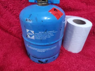 Pacchetto di bombola di gas e regolatore. - Bombola di gas Campingaz. - Regolatore di pressione.