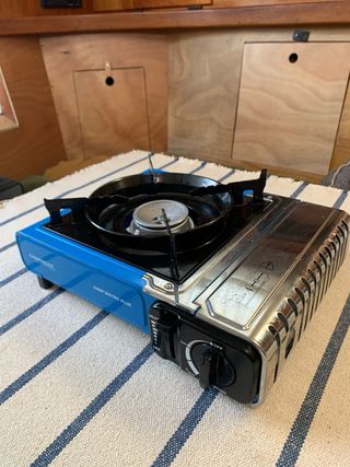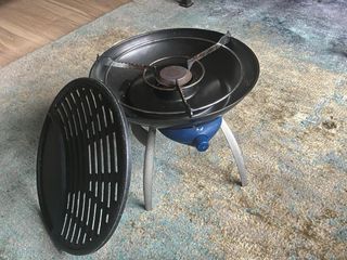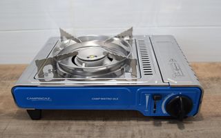 Fornello portatile della marca Campingaz. Ideale per il campeggio o per l'uso all'aperto. Design compatto e leggero. Superficie di cottura stabile.